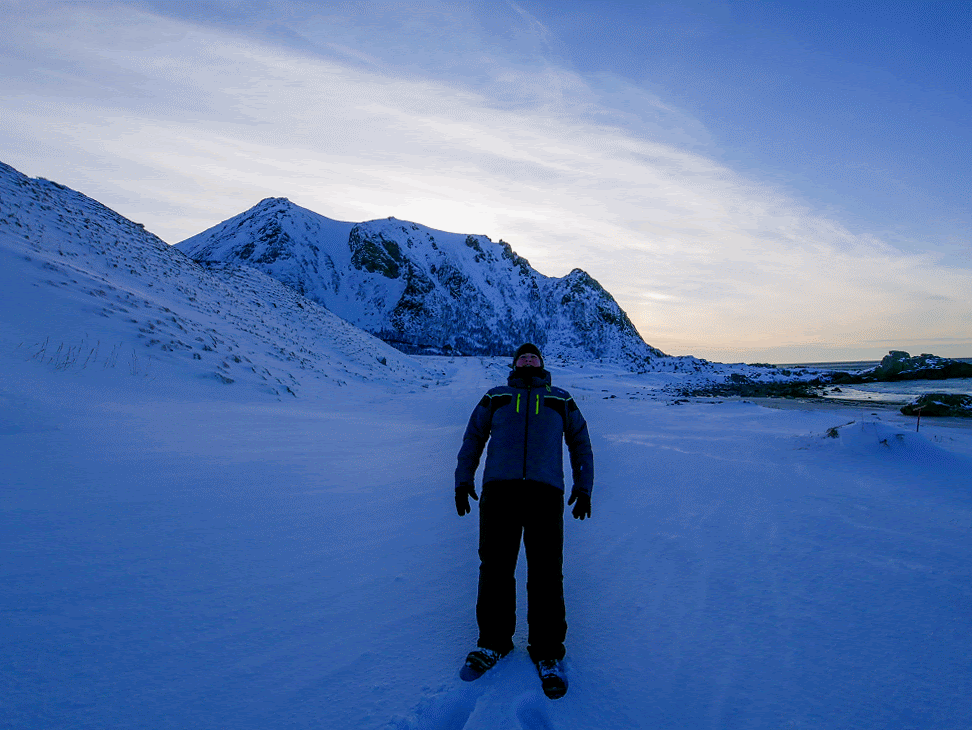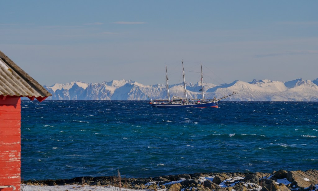 Doch bevor wir raus gingen, haben wir noch fleißig geschrieben und Bilder beschriftet und draußen auf dem Meer einen Großsegler gesichtet…Ist klar, im Winter geht man ja ständig mit nem Dreimaster segeln, Ihr nicht? Jedenfalls hat Stefan gleich nachgeschaut, welches Schiff das ist und es war die SV Rembrandt van Rijn, die in der Regel von Tromsø aus zu Expeditionen in der Polarregion ausläuft. Beispielsweise mit Halt in Andenes, so dass sie heute an uns vorbei schipperte. Mit ordentlich Wind und Geschaukel. Hauptgebiet für die Fahrten ist wohl Grönland, aber eben auch Nordnorwegen. 12 Mann Besatzung und bis zu 33 Passagiere finden auf dem Schiff platz. Wen so eine Reise mal interessiert, kann ja einen Blick auf die Website werfen. Einfach mal Oceanwide Expeditions bei der großen Suchmaschine eingeben und schon wird man fündig. Oder einfach den Schiffsnamen, da findet man dann auch Großaufnahmen des Dreimastschoners.