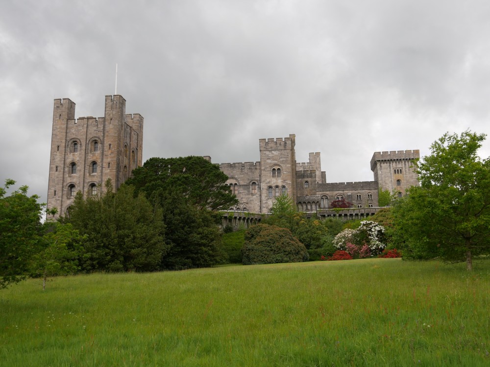 Aber nun wollen wir doch lieber mal Richtung Eingang gehen und uns diese monströse Burg anschauen. Dummerweise oder doch zum Glück, sind wir wieder mal falsch abgebogen und zuerst in einem Seitenflügel der Burg gelandet (mit einer hübschen Ausstellung von historischen Eisenbahnen), um uns dann doch direkt in den Garten durchzuschlagen. Dieser war mal ein bisschen was anderes als die Letzen, da er zum einen durch eine Hecke sozusagen eingezäunt war und eine recht große Fläche als Feuchtgebiet angelegt war mit Blumen, die Blätter hatten, die bis zu 3m breit werden können. Nach etwas schlendern und Quatsch machen im Fuchsientunnel, sind wir wieder zurück zur Burg und suchten erstmal den Haupteingang. Aber irgendwie, naja, wir haben uns irgendwie von hinten in die Räume geschlichen, die man besichtigen konnte und wunderten uns am Anfang noch, dass uns die Leute entgegen kamen – bis uns einer der Museumsmitarbeiter in die richtige Bahn lenkte. Neben tollen Steinmetzarbeiten, zum Beispiel die Prachttreppe, deren Bau 10 Jahre gebraucht hatte, standen wir noch in einem riesigen Saal, der an der Decke echt toll verziert war. Dann ging es noch durch die Schlafgemächer und die viktorianische Küche bevor wir wieder zurück zum Auto schlenderten. Noch als kurze Nebeninfo: Eigentlich ist Penrhyn Castle keine Burg, sondern eher ein Landschloss im Stil einer normannischen Burg. Es ist außerdem das zweitgrößte Schlossgebäude nach Windsor Castle auf den Britischen Inseln. Die Grundfläche des Gebäudes ist übrigens knapp 4 Hektar groß. Verlaufen ist also kein Problem und bei schlechter bis keiner Beschreibung/Wegweisern schonmal gar nicht.