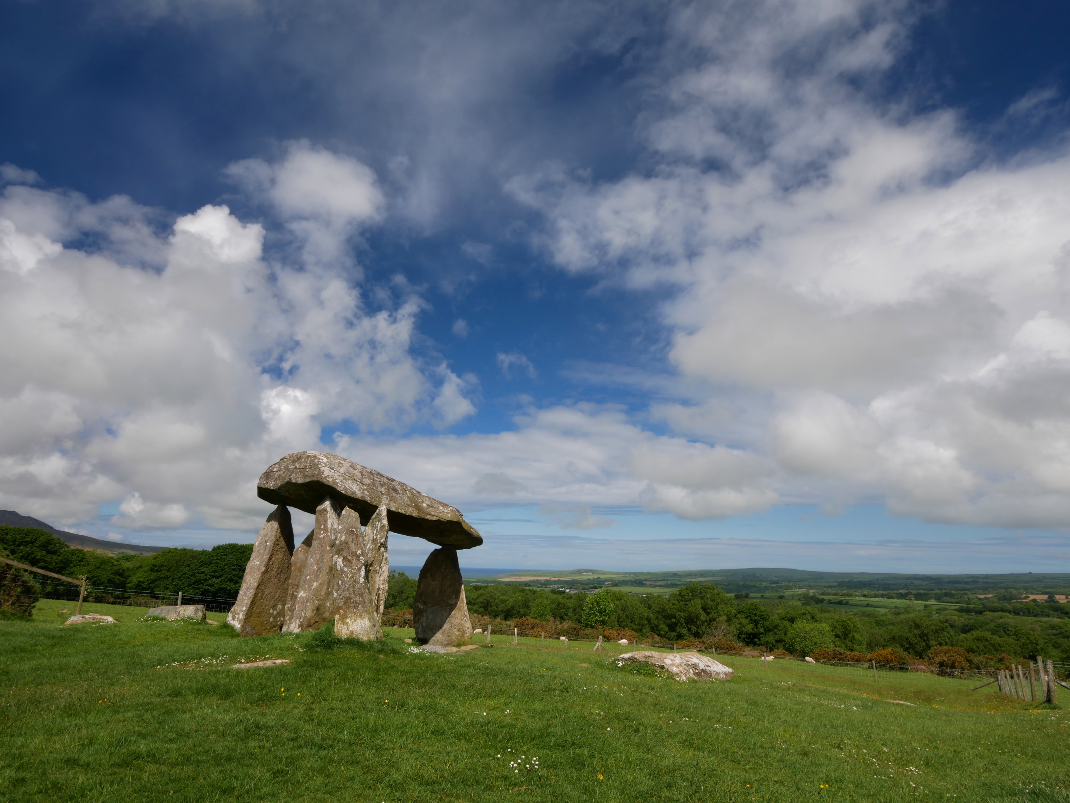 Mit der Tasse im Sack ging es dann zu einem Steinkreis, dem Pentre Ifan Burial Chamber. Es handelt sich dabei um ein neolithisches Grab, über 5000 Jahre alt. Man geht davon aus, dass die Grabkammer früher von einem Erdhügel bedeckt war. Diese Erdhügel kennen wir noch von Irland, wo es ähnliches gab, jedoch eben immer als Erdhügel. Der „Dachstein“ ist etwa 5 m groß und balanciert wirklich nur auf drei kleinen Stellen der unteren Steine. Und das eben seit über 5000 Jahren. Schräger shit 🙂