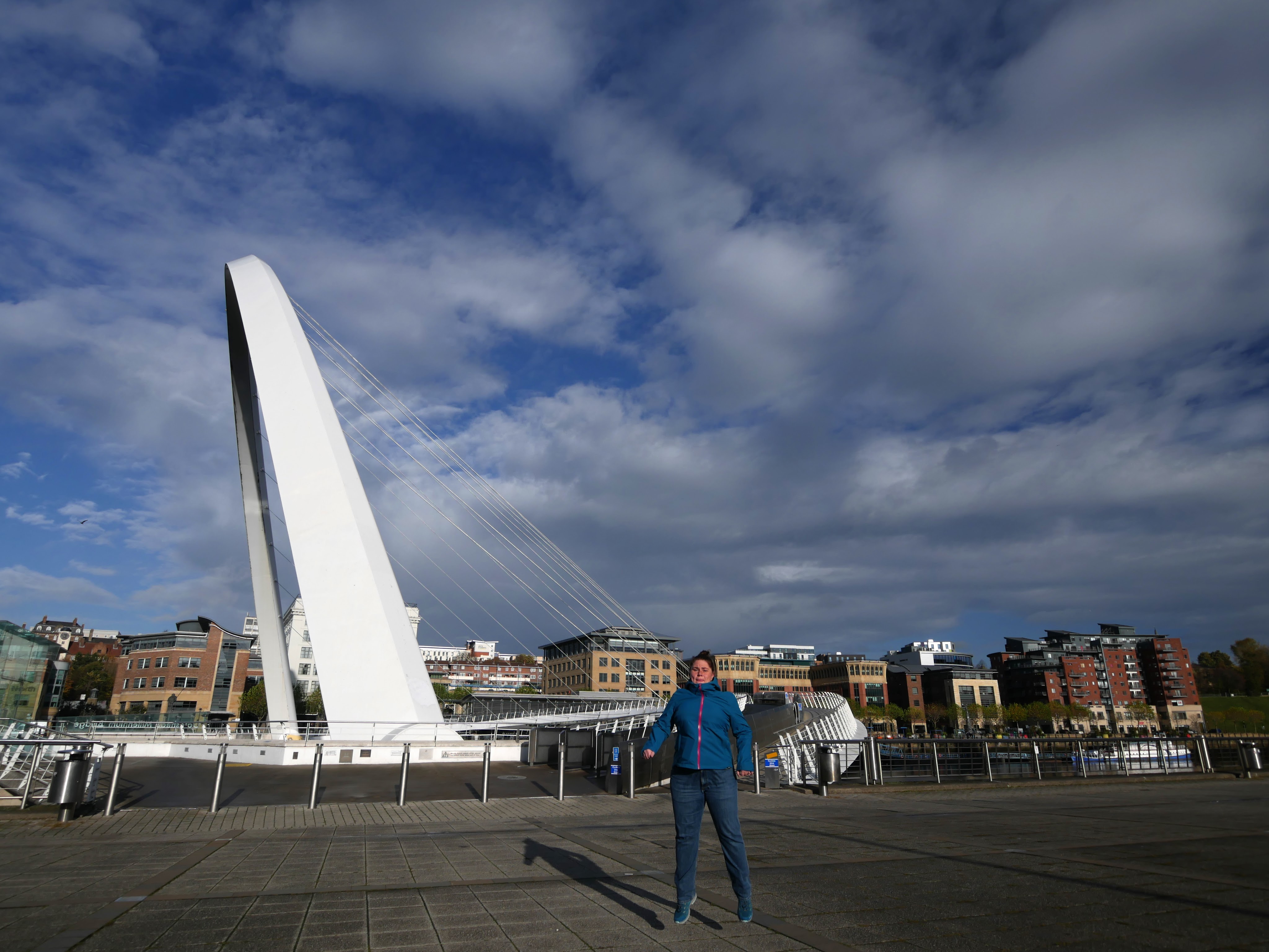 Also weiter im Text. Die Tyne-Brücke hatte ich ja nun im Kasten, da konnte ich auch die Millennium-Brücke noch einfangen. Da es aber noch nicht dunkel genug war, musste ich noch ein bisschen warten, da die Brücke nämlich nachts beleuchtet ist. Und siehe da, einmal in Blau bitte.