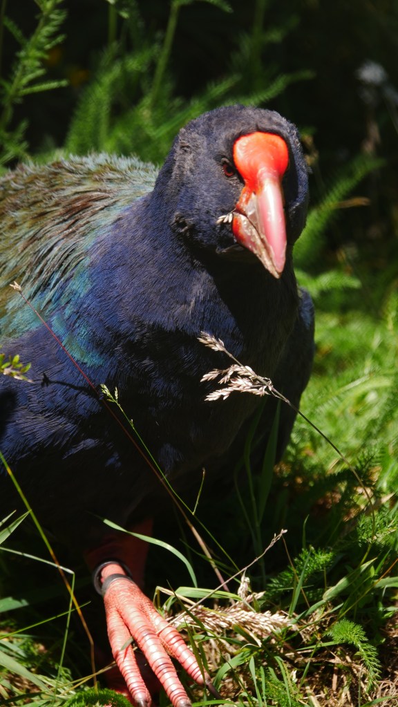 Der Takahe galt seit 1894 als ausgestorben und wurde erst 1948 durch Zufall wieder entdeckt. Mit einem Aufzuchtsprogramm konnte die Anzahl der Tiere auf 306 (in 2016) erhöht werden. Es gibt übrigens auch einen Nordinseltakahe, wobei der Vogel tatsächlich ausgerottet wurde. Alle Infos zu diesem etwas kurios anmutenden Vogel bzw. zur Ralle findet ihr hier.