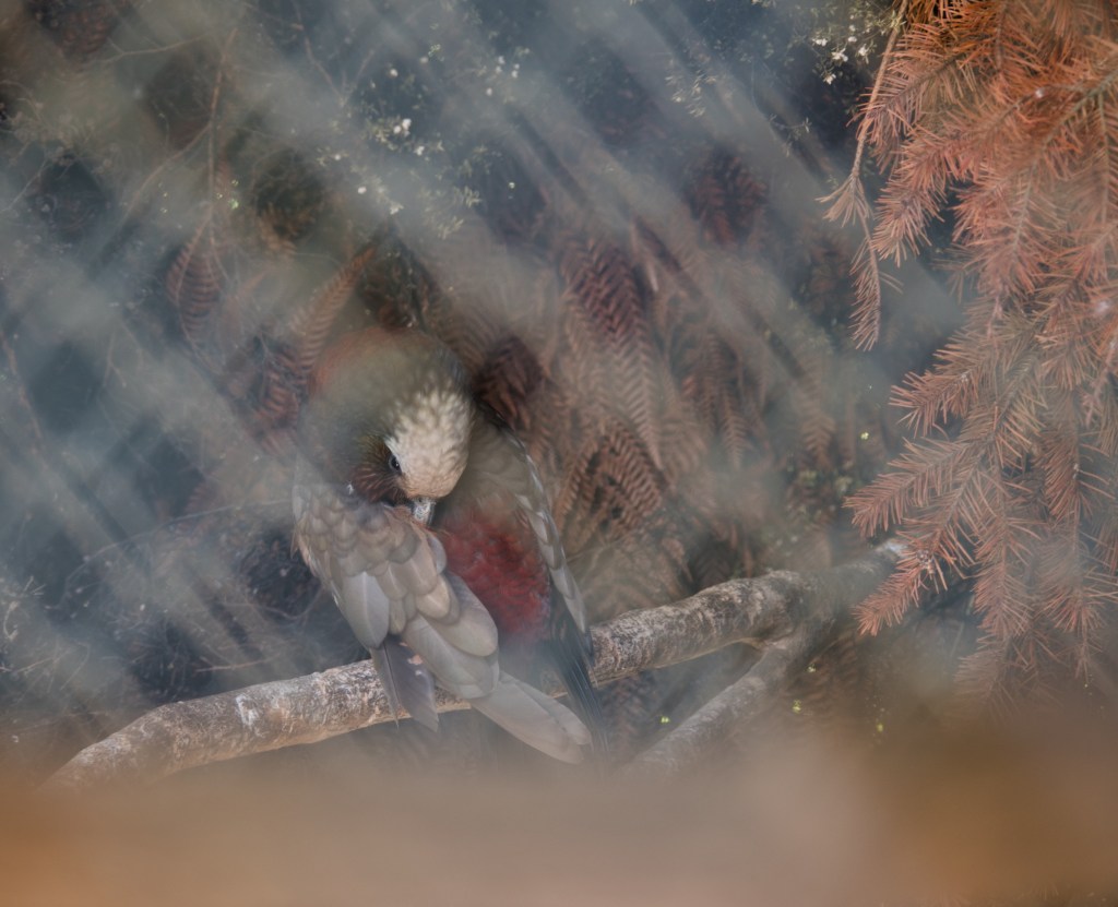In dem Park konnten wir darüber hinaus auch noch einen Kaka (einen Waldpapageien, der in Neuseeland beheimatet ist) und ein paar Sittiche sehen. Leider hatte sich der Kaka so versteckt, dass wir durch zwei Gitter fotografieren mussten, um ihn im Bild festzuhalten.
