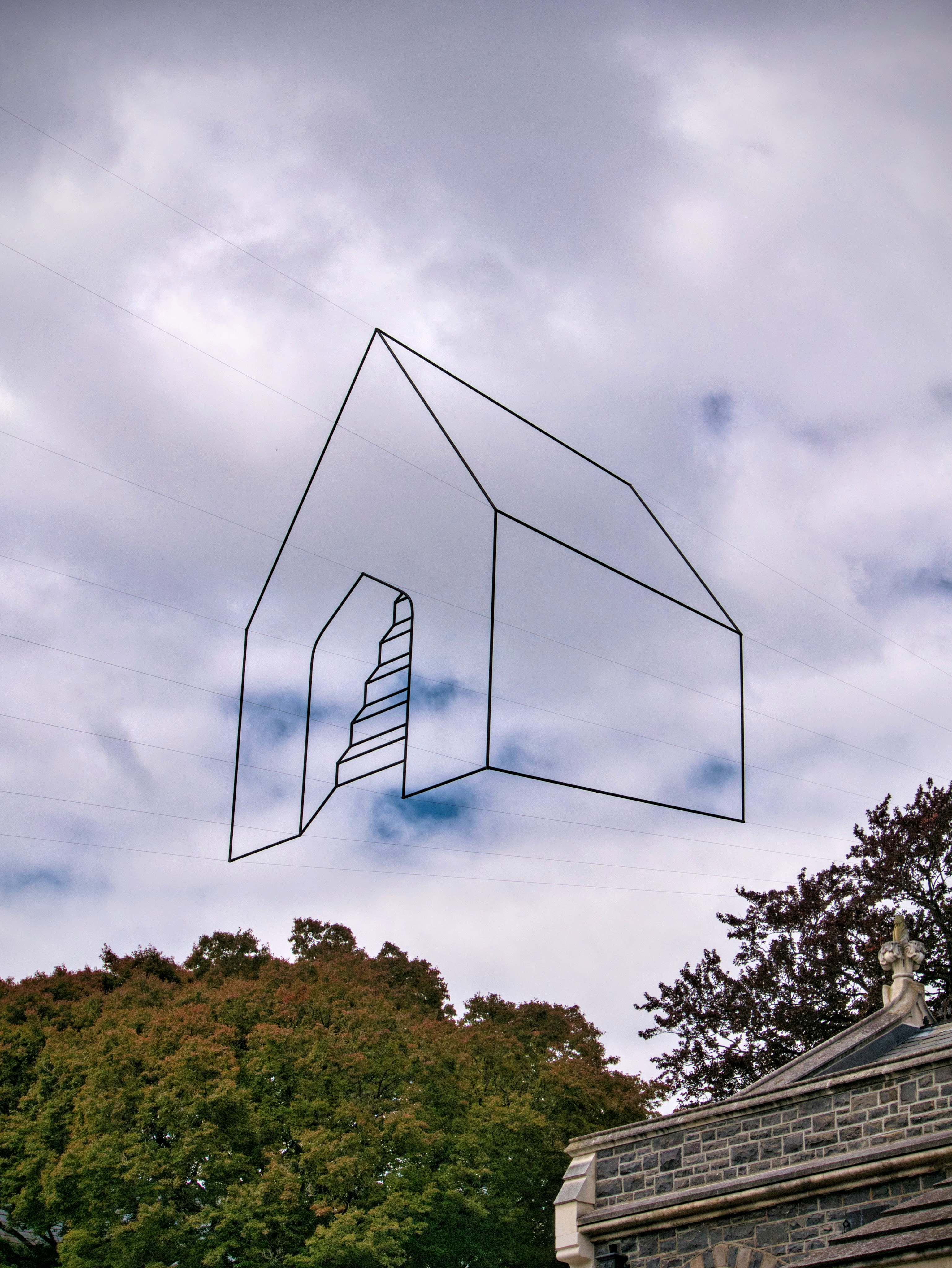 Dawson stützte sich dabei auf das traditionelle perspektivische Zeichnen, wobei sich die Form des Werks verändert, wenn sich der Betrachter unter ihm bewegt. Je nach Standpunkt des Betrachters kann es wie eine Reihe von Linien oder wie ein festes Objekt aussehen. Die röhrenförmige Struktur aus Kohlefaser ist 3 Meter hoch und hängt an dünnen Edelstahldrähten 6 Meter über der Mitte des North Quad – also dem Platz wo es jetzt in Christchurch hängt.