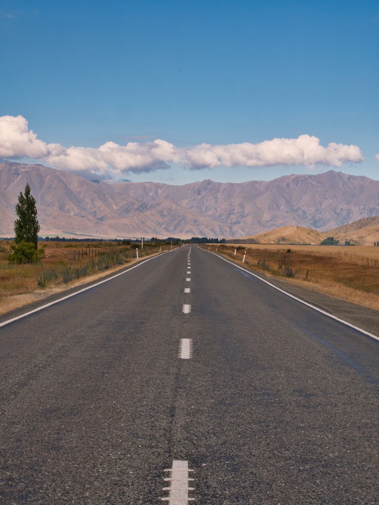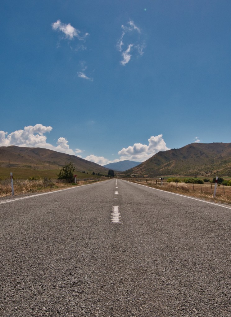 Naja, mit neuem Auto ging es also von Christchurch durchs Hinterland ohne große Stops, denn die Strecke ist eher zum Kilometer reißen, denn zum schauen und entdecken. Wir fuhren vorbei an riesigen Bergen, kargen Landschaften, grünen Landschaften, buschigen Landschaften, Seen, Täler und Berge, immer wieder Berge. Auf Straßen – lang und fotogen, oft sahen wir kilometerlang kein anderes Auto.