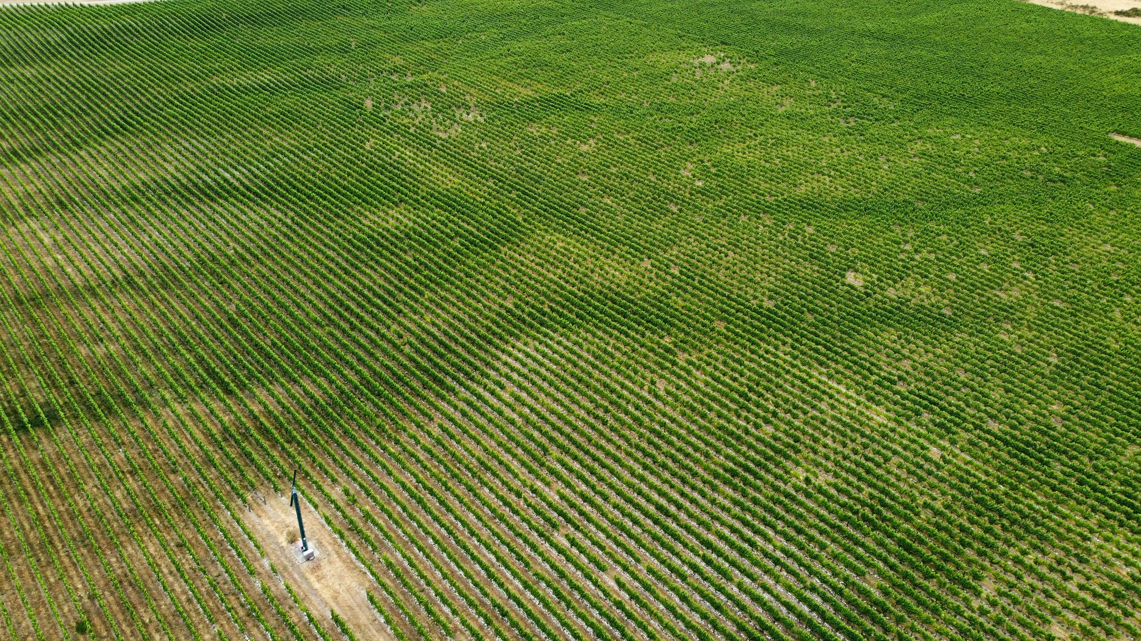 Nach dem See ging es dann weiter immer entlang des Wairau-Rivers, der auch für das Tal Namensgeber ist, in dem ein Großteil der Weine angebaut wird. Wir bauten noch einen kurzen Drohnenstopp am Fluss ein, doch viele Flüsse sind aktuell sehr sehr reduziert in der Wassermenge, so auch der Wairau-Fluss. Bereits etwas außerhalb von Blenheim fanden wir dann das erste große Gebiet mit Weinreben noch und nöcher. Da die Einfahrt zu dem Weingut frei war, nutzen wir die Chance und schauten uns das Ganze einfach mal von oben an. Im Gegensatz zu ins in Deutschland, wo vor allem AM Berg Wein angebaut wird, ist hier fast alles auf ebener Fläche. Und wirklich, bis an den Fuß des Berges gebaut.