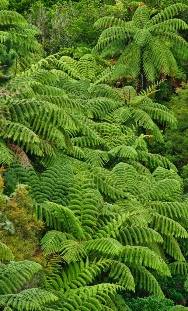 Wenn man aber die Gelegenheit hatte und die Sicht, dann sah man stark bewachsene Berge mit riesige Farnbäumen, die quasi alles überstrahlten. Auf dem Hinweg war die Sicht aber wie schon gesagt, ziemlich eingeschränkt. Als wir in Totaranui ankamen, war es vor allem um das Häuschen mitten auf dem Platz sehr voll. Viele Touristen mit großen Rucksäcken standen sowohl am Häuschen als auch am Strandaufgang. So richtig verstehen konnten wir das nicht, erst am Folgetage verstanden wir warum wieso weshalb. Da es von Totaranui nicht weiter ging und die Straße hier endete, drehten wir um und fuhren wieder in die Suppe hinein und über den Pass bis nach Wanui und weiter zum Takaka-Hill, um dann über den Pass nach Nelson zu fahren. Dort suchten wir eine Töpferei, wo wir beim ersten Besuch schon eine Tasse gekauft hatten. Leider war niemand in Galerie und auch der Sohn konnte uns nicht helfen, so dass wir leider ohne Tasse heimmussten. Denn der Töpfer sollte erst am Samstag wieder da sein und wäre dann auf dem Markt in Nelson. Aber am Samstag ging unsere Fähre nach Wellington, daher kam das leider nicht in Frage. Da das Wetter selbst in Nelson, der sonnenverwöhntesten Stadt Neuseelands, zu wünschen übrig ließ und uns die Stadt an sich nicht so richtig anmachte, fuhren wir weiter nach Marahau ohne größere Umwege. Nur am Schiffswrack machten wir einen kurzen Fotostopp, waren aber auch hier zeitlich etwas neben der Spur, denn wir erwischten es wieder nur bei Ebbe. Und es bleibt eben ein hässliches altes Wrack, dass die Umgebung verschandelt. Dennoch ist´s ein beliebter Foto Spot.