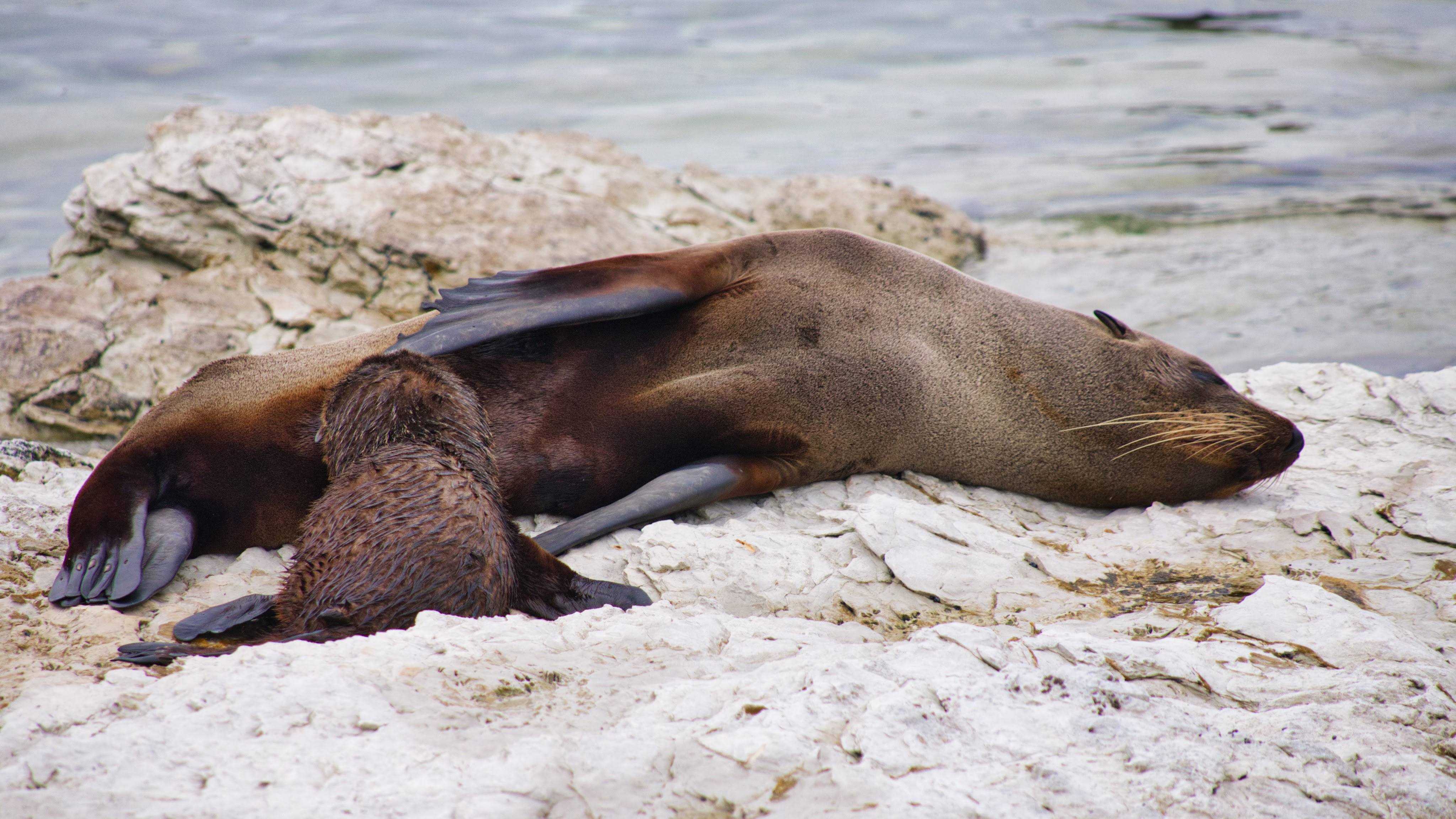 An dem Punkt, wo wir waren, gab es dann aber keine Absperrungen mehr und wir konnten etwas näher an die Tiere rangehen, aber mit Menschenverstand und genügend Abstand eben. Die Küstenlinie hier, die teilweise sicherlich vor 7 Jahren und somit vor dem Erdbeben noch unter Wasser lag, sah fast ein bisschen wie bei den Pancake Rocks aus.