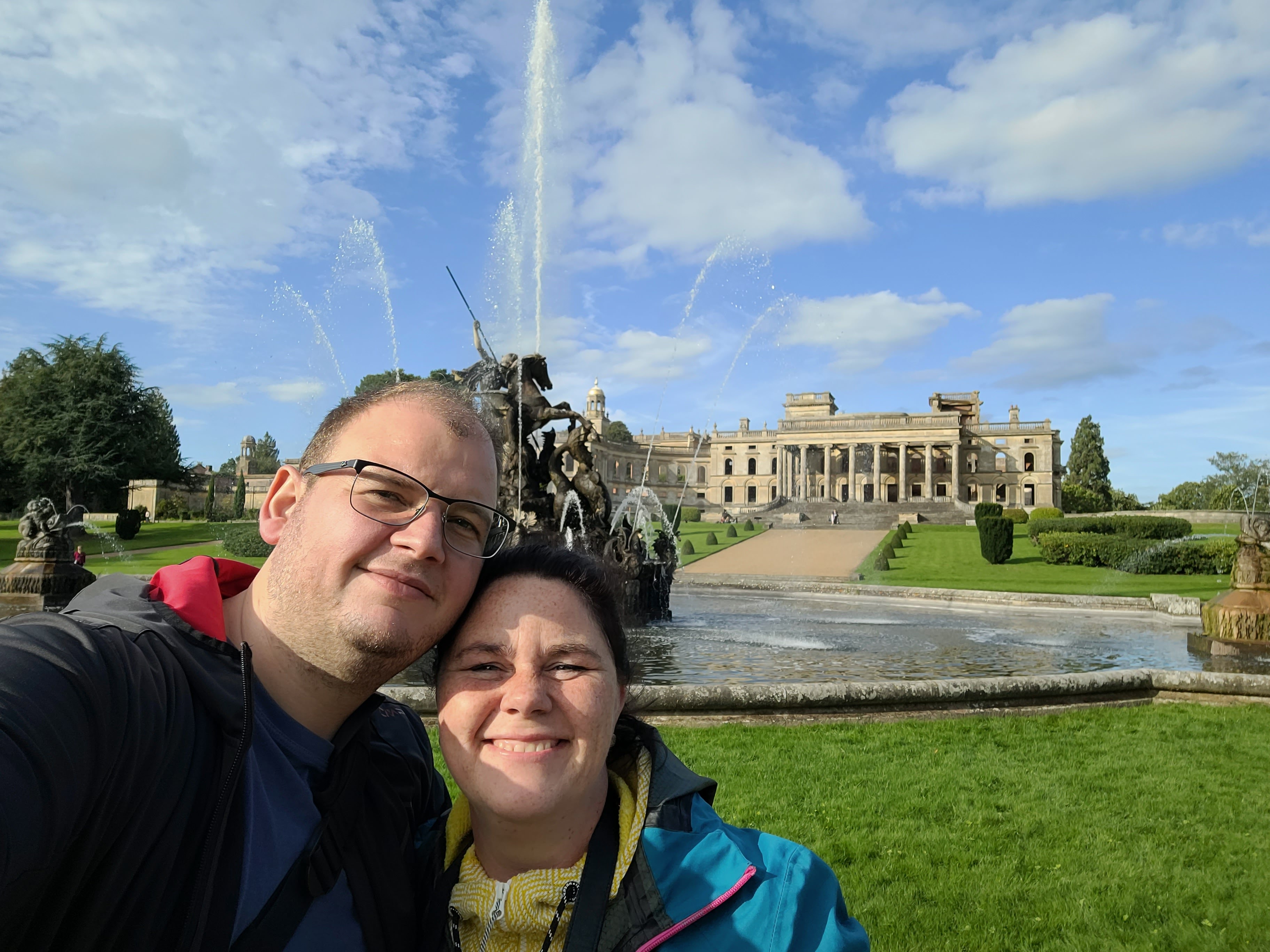 Da das Wetter immer noch gut war und es zudem Samstag, war die Stadt entsprechend voll und so entschieden wir (oder besser ich), dass ich auf einmal null Bock auf Shakespeare hatte und wir weiterfuhren. Viel stand für den Tag so oder so nicht mehr auf dem Plan und wir steuerten direkt Witley Court an. Wir waren genau noch rechtzeitig, damit wir den größten Springbrunnen Europas (!) um 16 Uhr Wasser speien sehen konnten. Witley Court hat eine recht bewegte Geschichte mit vielen Besitzern und jeder war etwas größenwahnsinniger als der andere, so dass ein Gebäudekomplex entstanden ist, wo in unserem Kopf nichts so richtig zusammenpassen wollte. Also zumindest die Außenfassade und das Innere, denn hier traf Backstein auf Sandstein und Beton. Wer mehr über die Geschichte Witley Courts wissen mag, gerne hier reinschauen. Der Brunnen zeigt übrigens Perseus und Andromeda.