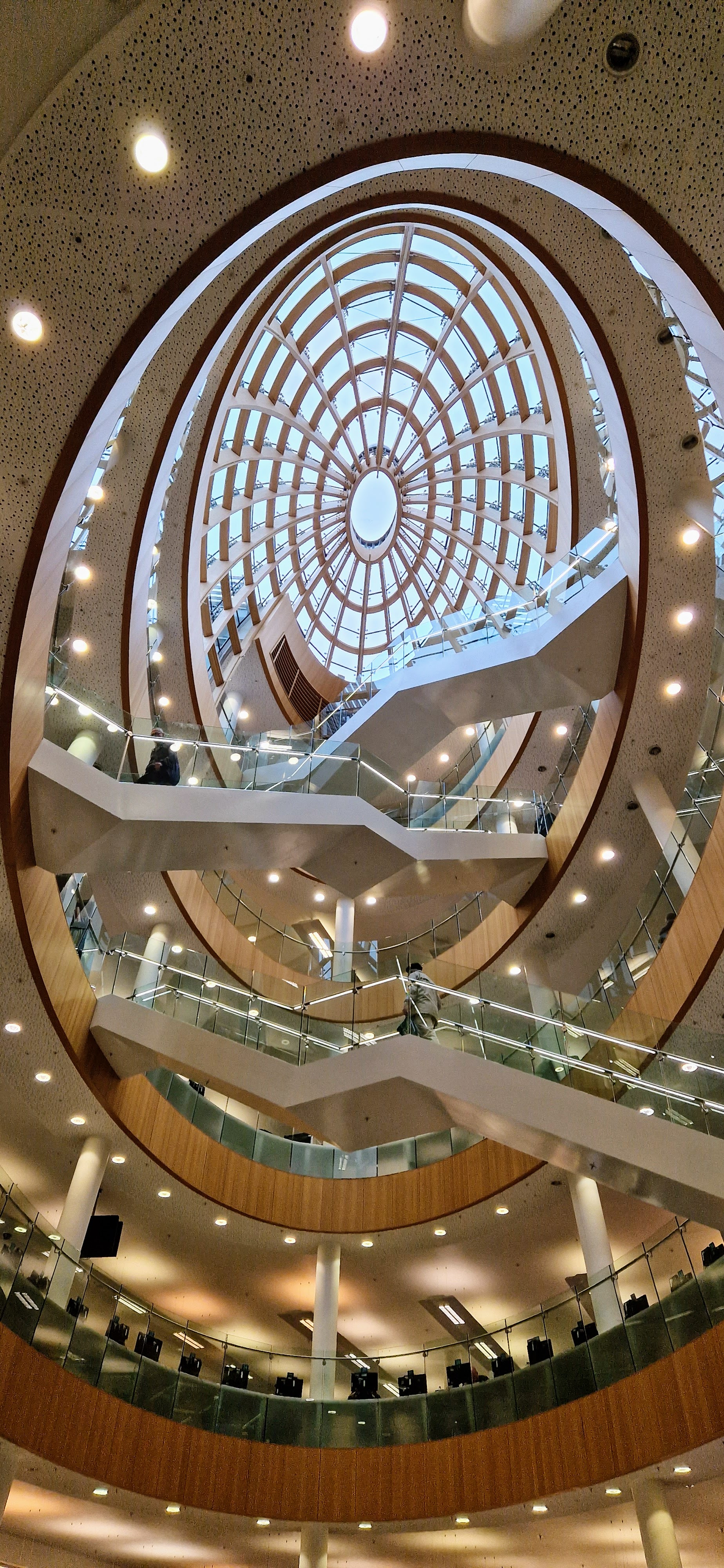Von der Anfield Road ging es dann ins Zentrum von Liverpool, wo ich uns die Bibliothek für einen kurzen Abstecher rausgesucht hatte. Also stiefelten wir in dieses Gebäude, das mit einer tollen Architektur und einer Menge neuer und vor allem alter Bücher aufwarten konnte. Neben einer riesigen Kuppel gab es einen runden Leseraum, bestückt mit Büchern und einer kuppelartigen Decke. Daneben gab es auch noch weitere Räume, die eher der Ausstellung dienten, denn als Leseraum. Das es eine Dachterrasse direkt neben der Kuppel gab, haben wir erst im Nachhinein mitbekommen. Dennoch, ein hübsches Gebäude, das in 2017 über 750.000 Besucher hatte. Die Stadt selbst ist auch größer, als wir dachten, denn mit knapp 500.000 Einwohnern ist es nur wesentlich kleiner als Manchester mit 590.000 Einwohnern. Wer hätte das gedacht? Ich hab immer vermutet, dass Liverpool eher so um die 200.000 Einwohner hat. Lag ich wohl nur knapp daneben. Aber nun schaut mal hier, wie die Bibliothek mit der Kuppel von innen aussah…ich meine – das ist doch einen Blick wert, oder?