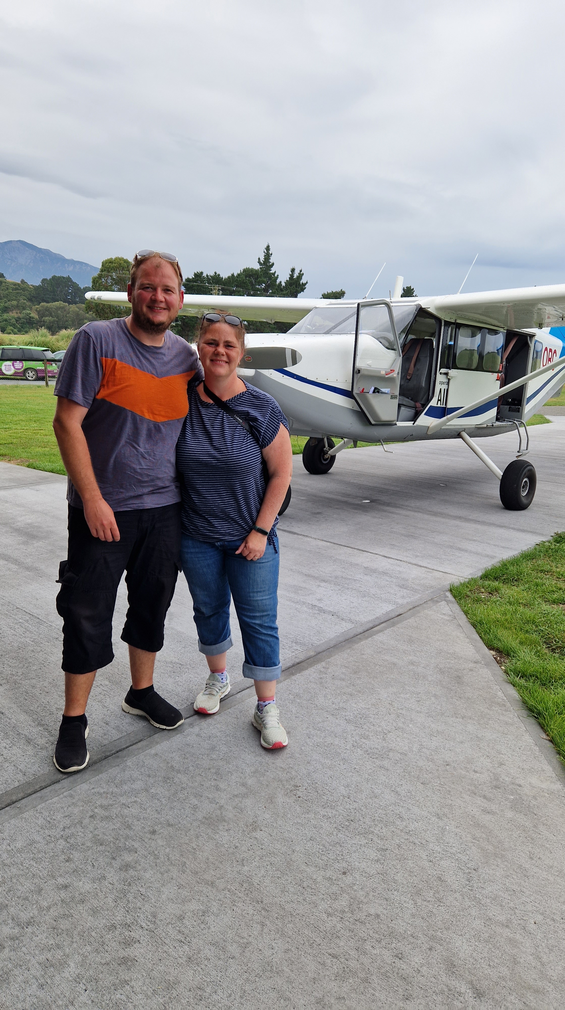 Kurz vor der Landung gab es dann aber tatsächlich noch einige (Dusky-) Delfine, die recht nah an der Küstenlinie und parallel zur Landebahn schwammen, zu sehen. Und dann setzten wir, zum Glück, wieder auf Land auf. Schnell noch ein Foto vorm Flieger und dann erstmal den Magen beruhigen. Keine Sorge, alles ist drin geblieben, aber das war schon ordentlich heftig, so dass wir erstmal in die Unterkunft fuhren, uns trockene Brötchen reinpfiffen, Bilder sortierten, ich ein bisschen schlummerte, um dann wieder vom Fomo (Fear of missing out – also die Angst, was zu verpassen) gedrängelt zu werden.