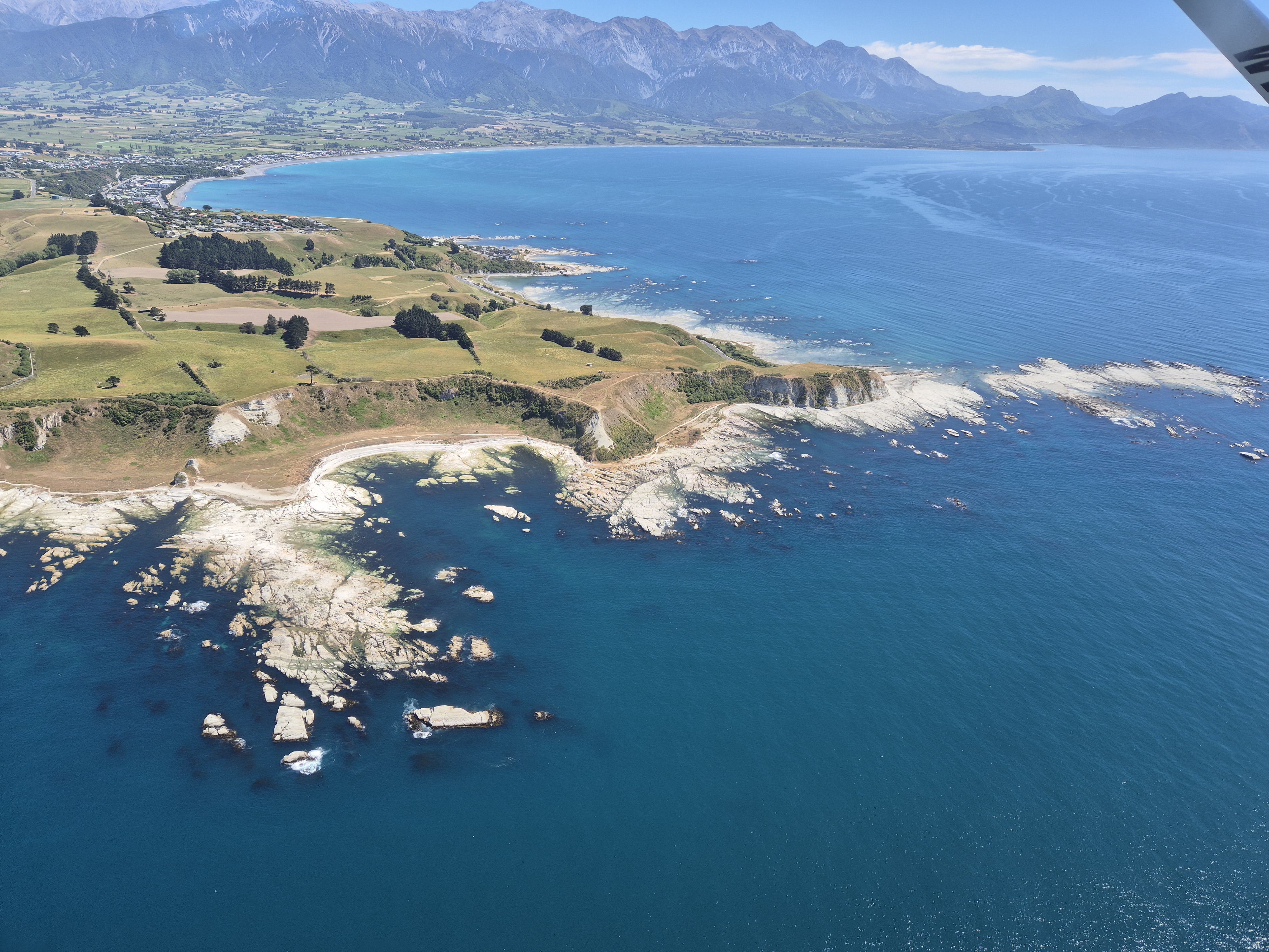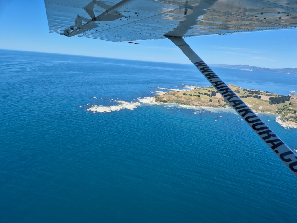 Wir warteten nicht ab, bis der Wal wieder abtauchte, sondern flogen noch etwas nach Norden, da dort Pilotwale unterwegs sein sollten. Leider haben die sich dann doch nicht gezeigt. Dafür gab´s diesmal für Stefan schöne Aussicht auf die Küste, die, wie ihr teilweise ja schon wisst, sich durch das Erdbeben 2016, um einige Meter hochgedrückt hat. Hier geht es nochmal zu unserem damaligen Beitrag. Dort seht ihr dann auch mal einen anderen Wal 🙂