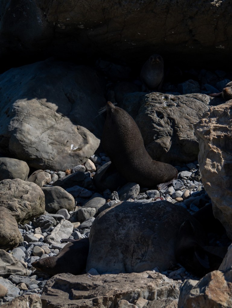 Also packten wir nochmal unsere Sachen und fuhren Richtung Kaikoura, um uns doch nochmal die Seehundkolonie anzuschauen. Diesmal beschlossen wir, auf dem Rückweg oberhalb der Kolonie zurück zum Auto zu laufen. So konnte man auf dem Hinweg die Seehunde beobachten, Vögel fotografieren, Schwalben und Möwen und ihre Jungtiere sichten oder einfach rumschlendern. Es war nicht viel los auf dem Weg, da wir auch recht spät unterwegs waren, aber die Sonne knallte uns dennoch unentwegt auf die Birne. Wir liefen so lange, bis wir den Aufgang nach oben gefunden hatten und stapften dann die Klippe hoch um von oben nicht nur aufs Wasser schauen zu können, sondern auch auf den Bergzug „Kaikoura Ranges“. Es war wirklich nicht viel los, so dass wir hier oben auch noch den ein oder anderen Zwerg fotografieren konnten. Neuseeländische Schwalben, Buchfinken oder auch Goldammern oder einen Grey Gerygone (der war soooo klein, der hatte eher die Größe einer kleinen und noch nicht ausgewachsenen Blaumeise).
