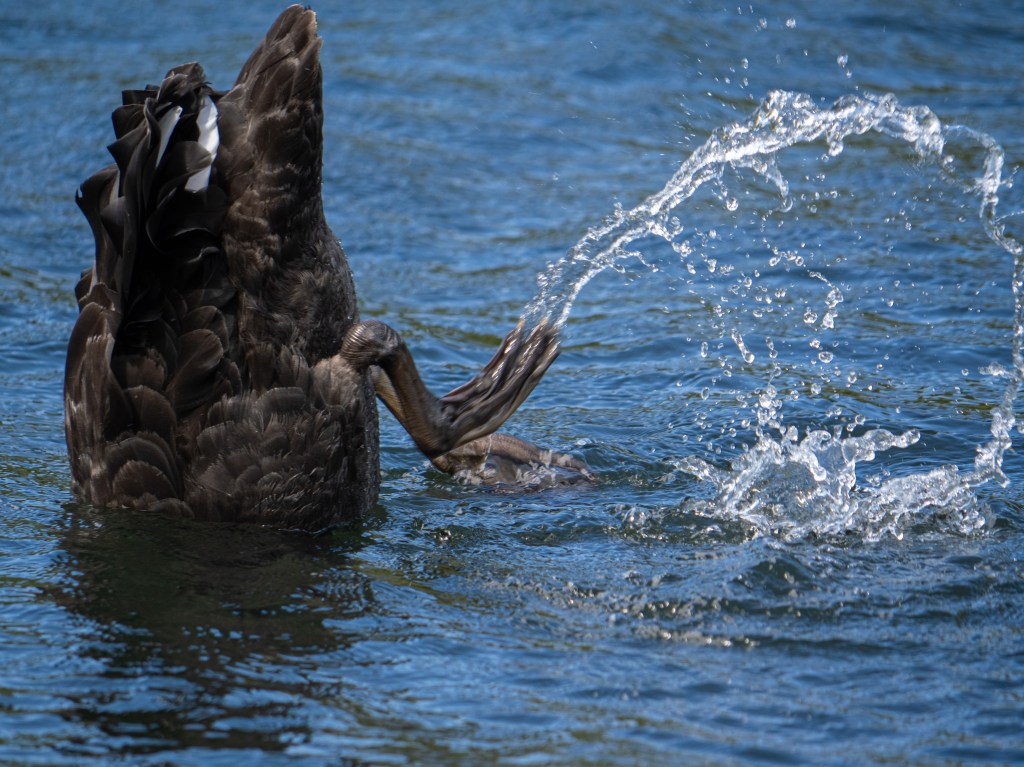 Nach dem Garten fuhren wir noch zu einem See, von wo man an schönen Tagen Mount Taranaki sehen kann, der sich, im optimalen Fall, im See spiegelt. Das Glück hatten wir am heutigen Tag nicht, auch nicht, dass der Berg seine Spitze zeigte. Stattdessen verhüllte wieder eine Wolkenmütze den oberen Teil des Vulkans, dafür verzogen sich die Wolken aber etwas, je weiter wir wieder Richtung Küste fuhren. Und New Plymouth liegt direkt an der Küste und der See ist unweit von New Plymouth entfernt. Und statt einen unverhüllten Taranaki zu sehen, haben wir einen Haufen Gänse und viele viele schwarze Schwäne gesehen, die sich auf dem See tümmelten, oder eben davor.